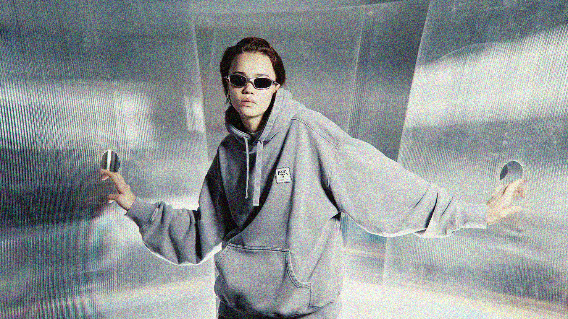 Grey Hoodie Acid Wash ATE "Extinction Code"