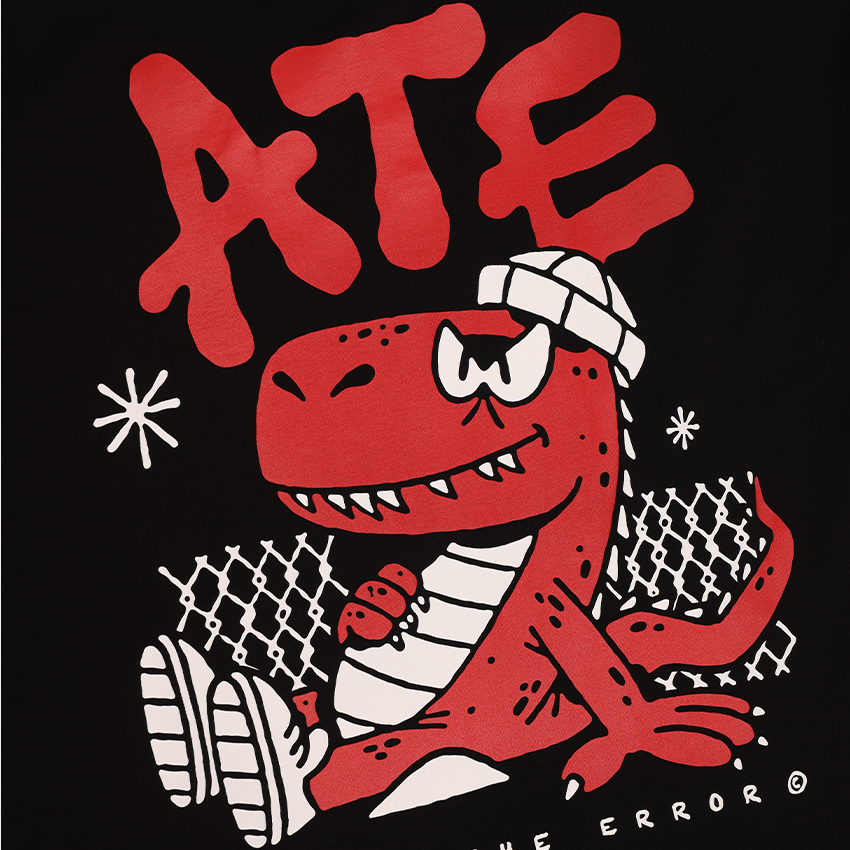 UNISEX T-SHIRT WITH PRINT ''ATE'' ON THE FRONT & CHARACTER DINO PRINT ON THE BACK.
